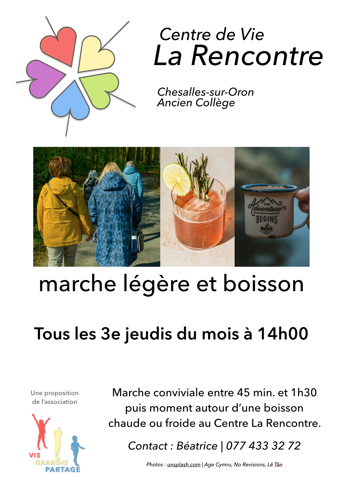 temps de convivialité en prenant l'air et partageant un verre, c'est par exemple la marche, tous les 3e jeudis du mois à partir de janvier 2026.